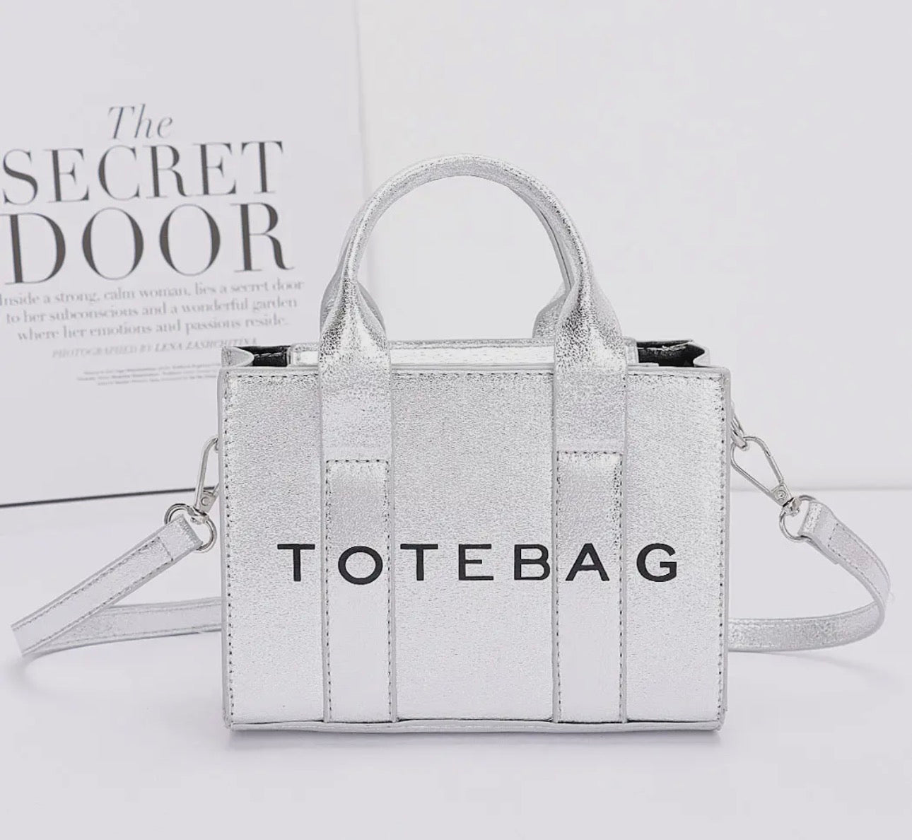 Make a bold fashion statement and carry your daily essentials in this sleek and modern metallic tote bag! Long strap included. Perfect for special occasions or just to amp up your daily wear!