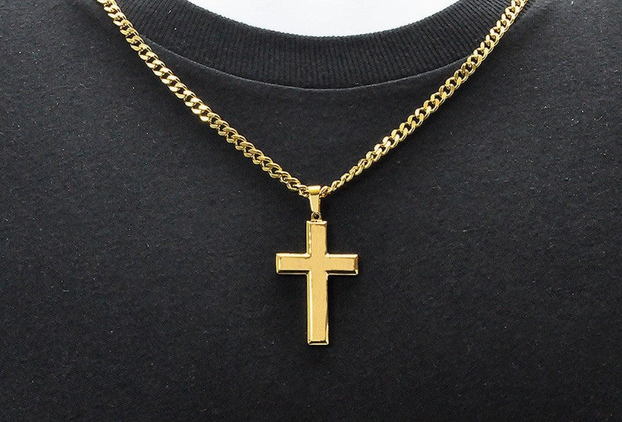 Blackjack Men's Jewelry- Gold Stainless Steel Cross Necklace